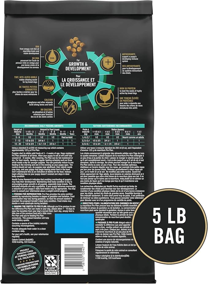 Purina pro plan High Protein Toy Breed Puppy Food DHA Chicken & Rice Formula - 5 lb. Bag
