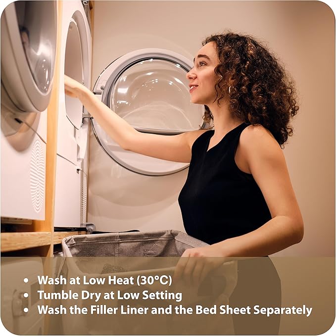 - Washing Instructions for Dog Bed: Please wash the cover and inner liner separately. Inner liner - washing machine 30 degrees/drying on the low setting. Cover - washing machine 36 degrees/drying on low setting