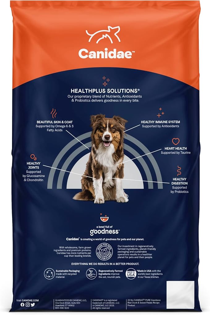 - Contains 1- 12 lb. Bag of Canidae Pure Duck and Sweet Potato Recipe Dry Dog Food