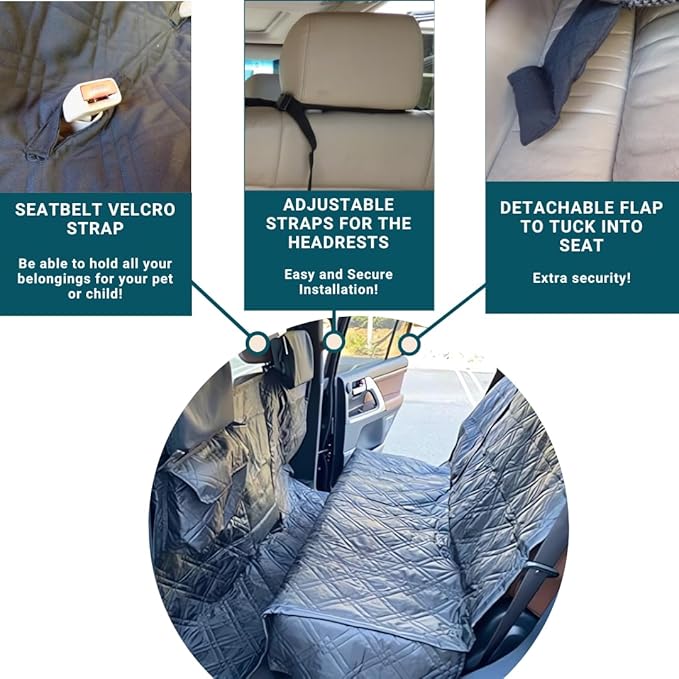 - EASY TO INSTALL with adjustable Straps, Buckles, Seat Belt holes, Seat Anchors and Non-Slip Mesh. DOUBLES as Cargo Liner