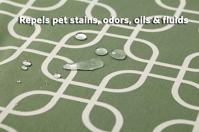 - Pet bed features durable attractive green geometric pattern w/ removable zippered case and Teflon Fabric Protector which repels pet stains, odors, oils & fluids