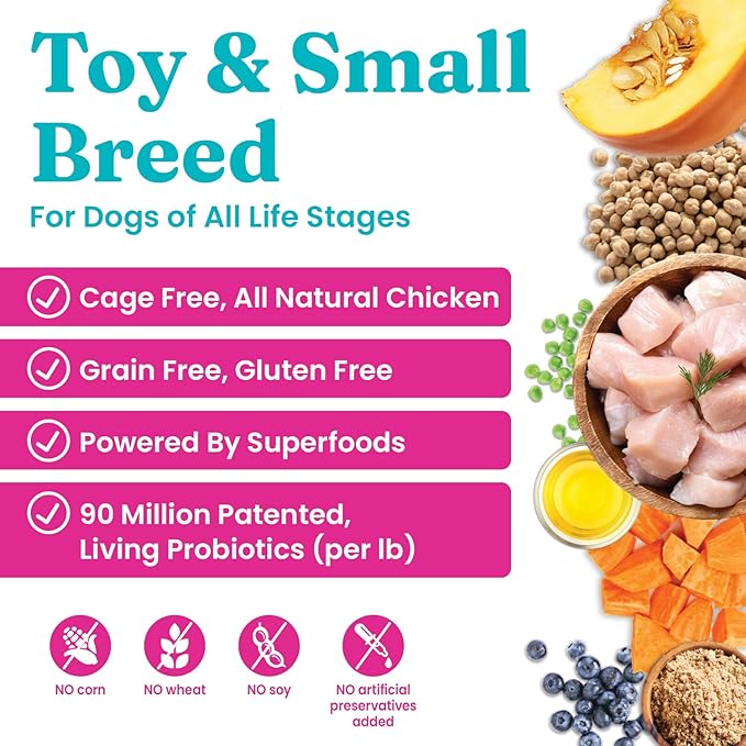 - Easy on the Teeth & Stomach - This grain and gluten free kibble was designed for small mouths to help small canine pets chew with ease. It’s also a great healthy food for dogs with sensitive stomachs.