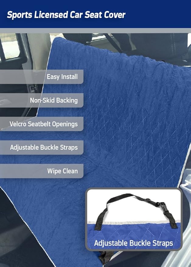 - LOOKING FOR THE HIGHEST QUALITY BEST SEAT COVER FOR YOUR PET yet FASHIONABLE & COOL? Look no further! * This COLLEGE LICENSED top quality quilted material car seat cover with NON-SLIP backing protects your pet from sliding around in the car & protects seats from spills, dirt, hair, scratches, fur, mud & other messes.