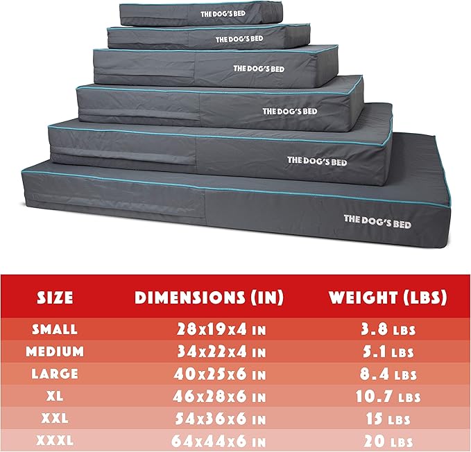 - Medium Grey with Blue Trim (Easy Clean Cover) 34x22x4” waterproof orthopedic dog bed. Solid 2” high density, orthopedic memory foam over a solid 2” base of high stability support foam with covers designed so that your bed fits your home decor seamlessly and your dog can stay close to your family