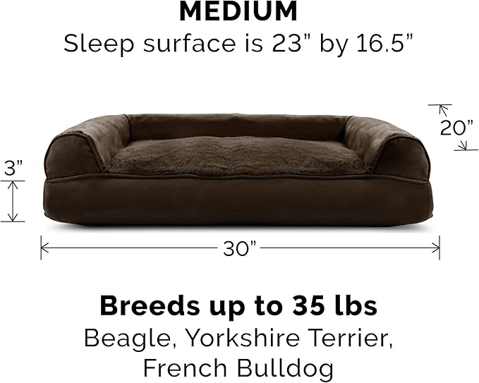 - PRODUCT DETAILS: Pillow Dog Bed, Espresso; Medium - 30" x 20" x 6" (Sleep Surface: Approx. 23" x 16.5")