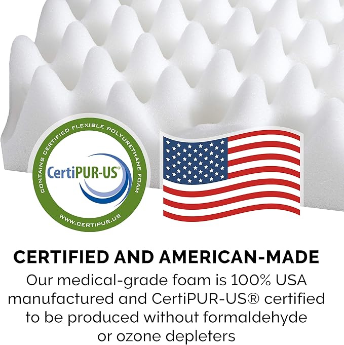 - CERTIPUR-US: Our foam is 100% manufactured in the USA and independently tested to meet CertiPUR-US standards for emissions, content, and durability; made WITHOUT formaldehyde, phthalates, mercury, lead, and ozone depleters