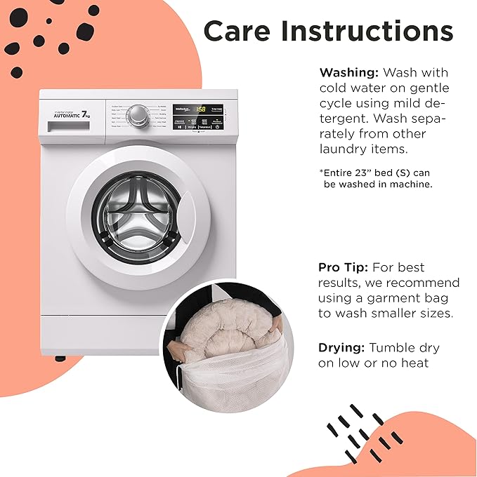 - MACHINE WASHABLE; machine wash entire bed on gentle cycle and dry on low or no heat; please see our pro tips and special care instructions for more details