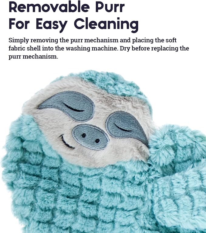 - TOUCH ACTIVATED PURR: The sloth Purr Pillow is designed to provide a familiar, soothing cat purr that lasts 2 minutes each time the toy is squeezed or cuddled.