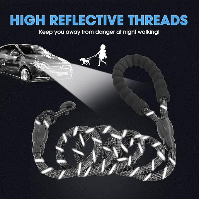 - REFLECTIVE FOR NIGHT SAFETY - Highly reflective threads dog leashes keeps you both safe and visible on your late-evening walks.