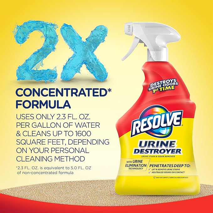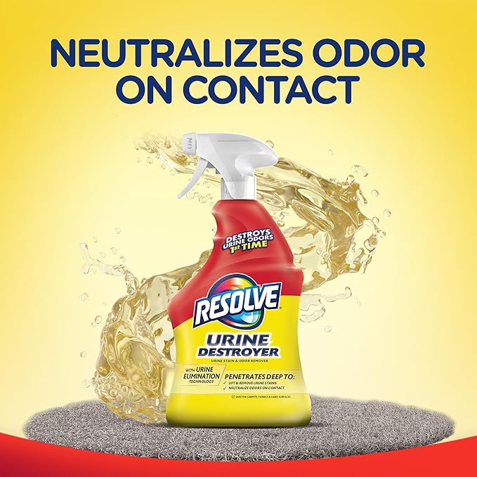 Resolve Urine Destroyer Spray Stain & Odor Remover, Transparent, No Flavor, 32 Fl Oz