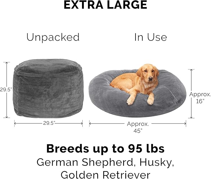 - PRODUCT DETAILS: Ball Bed, Gray Mist; X-Large - 29.5" x 29.5" x 29.5" (Shipped), 45" x 45" x 16" (In-use)