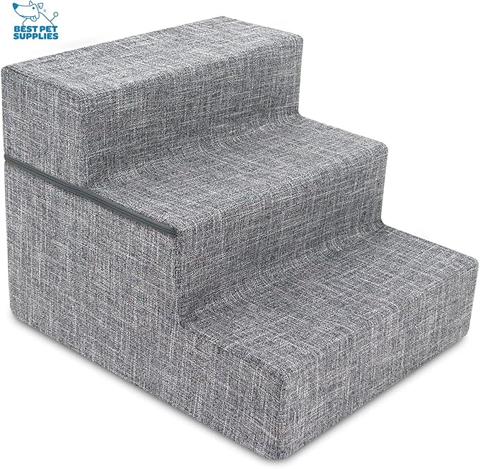 Best Pet Supplies Foldable Foam Pet Steps for Small Dogs and Cats Linen,3-Step