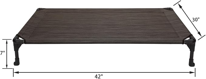 • Material: Textilene Mesh and Powder-Coated Steel. Size: 42"x30"x7" (107x76x18 cm). Suitable for a normal adult German Shepherd, Golden Retriever, Akita etc.