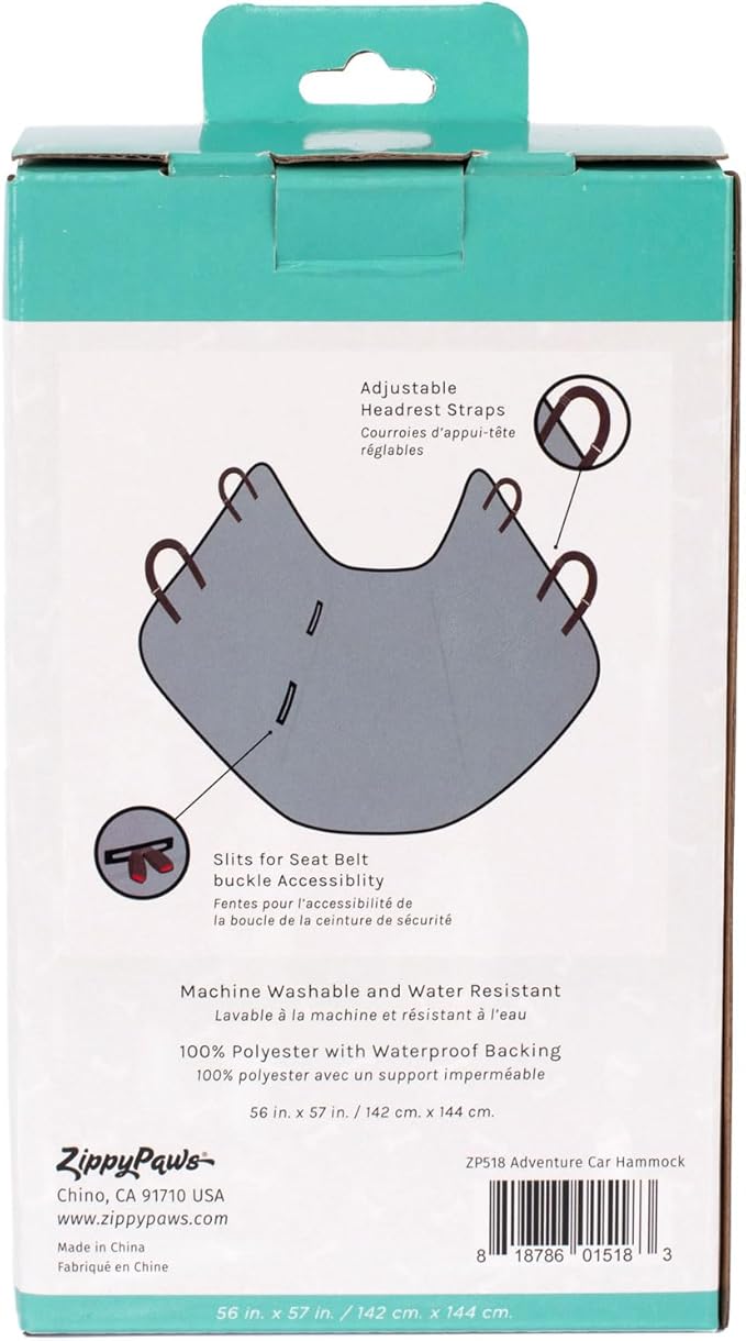 - Loop the hammock over headrests to provide a cozy and protective safe space for your pet in the backseat.