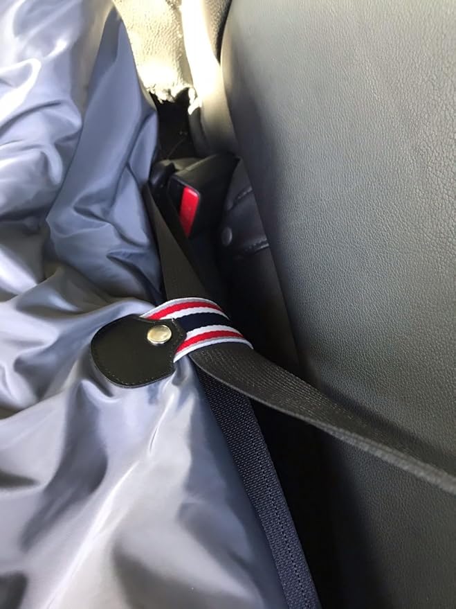 - Simply insert the hole on the top of the cover over the seat headrest and the seatbelt can be inserted on the back of the pet bed for enhanced security