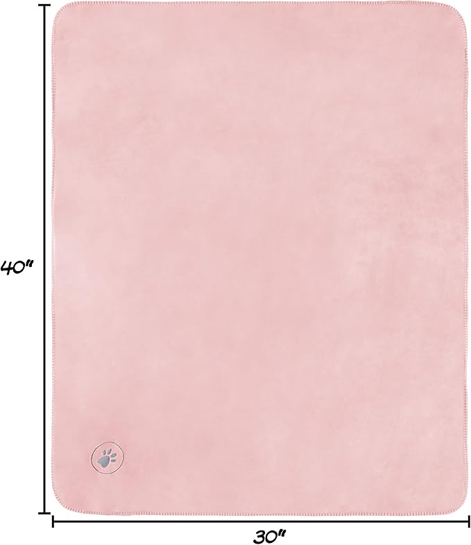 - PRODUCT DETAILS - Materials: Polyester 250GSM Flannel, PU Water-Resistant Coating, and 230GSM Sherpa Polyester Fleece. Dimensions: (L) 40” x (W) 30” x (H) 0.25”. Color: Pink with Embroidered Paw Design.