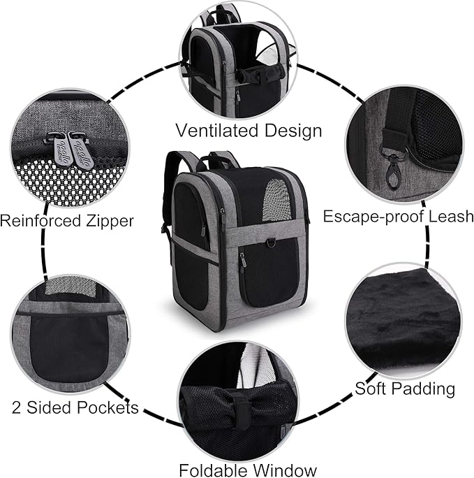 - ESCAPE PROOF- The last thing you want is an escaped pet running around the airplane cabin or outdoors. APOLLO WALKER pet backback carrier keeps your pet safe and secure while flying, walking, cycling, or hiking with claw-proof mesh and zipper buckles. Carrier also has a leash tether to attach to your dog or cat’s collar if you decide to open the top window to let your pet stick their head out.
