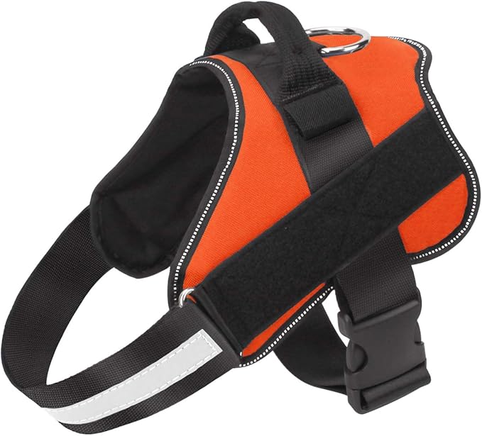 - OUTDOOR HEALTHY: Puppy no pull dog harness with reflective straps to ensure your dog is highly visible and keep dogs safe at night. You can connect the dog leash on the D-ring and with handle is easy to control on crowded streets. The high-end pet harness is perfect for daily walking, running, hiking, training, hunting, outdoor adventure and more!