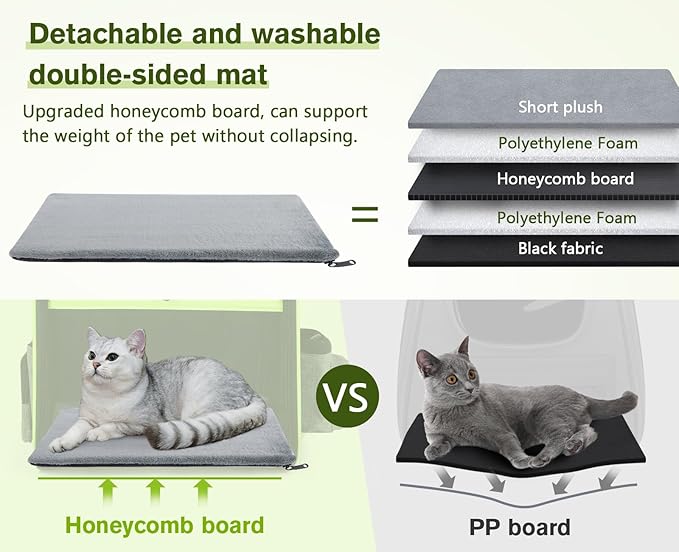 - 【 GREAT VENTILATION & VISIBILITY & COMFORT 】: A 3-panel acrylic board design can provide excellent light transmission and visibility. 4 ventilation holes are located on both sides and at the top with a breathable mesh, ensuring airflow and no sultry heat. To enhance comfort, the pet cushion is placed inside the cat backpack's bottom and has a removable, washable cover. This ensures your furry friend has a perfect spot to rest while on the go.