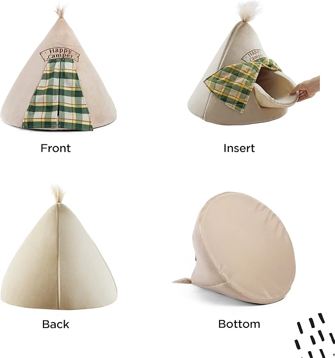 - FUN AND WHIMSICAL DESIGN: With the adorable original design you’ll love our adventurous Happy Camper teepee bed as much as your pet does! The reversible cushion allows you to choose between 2 different color options while the pet-safe foam construction ensures durability flexibility and longevity.