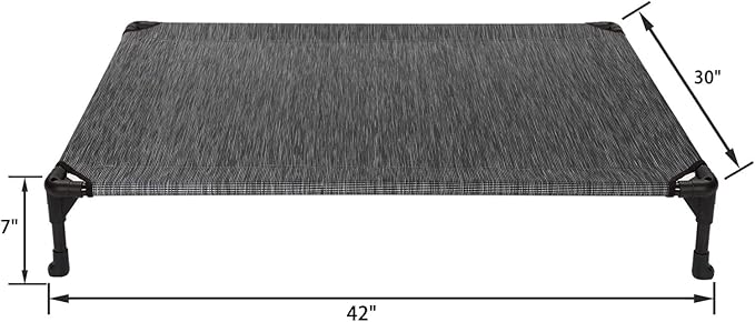 • Material: Textilene Mesh and Powder-Coated Steel. Size: 42"x30"x7" (107x76x18 cm). Suitable for a normal adult German Shepherd, Golden Retriever, Akita etc.