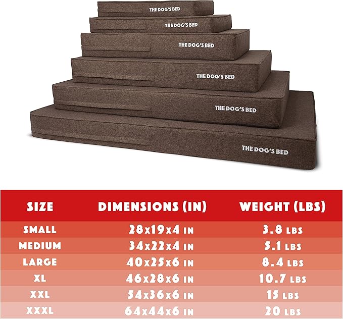 - Medium Brown Poly-Linen 34x22x4” waterproof orthopedic dog bed. Solid 2” high density, orthopedic memory foam over a solid 2” base of high stability support foam with covers designed so that your bed fits your home decor seamlessly and your dog can stay close to your family