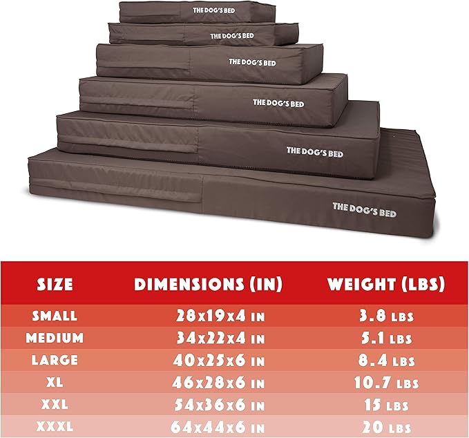 - XXXL Brown with Brown Trim (Easy Clean Cover) 64x44x6” waterproof orthopedic dog bed. Solid 2” high density, orthopedic memory foam over a solid 4” base of high stability premium support foam with covers designed so that your bed fits your home decor seamlessly and your dog can stay close to your family