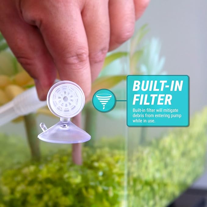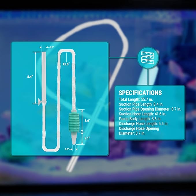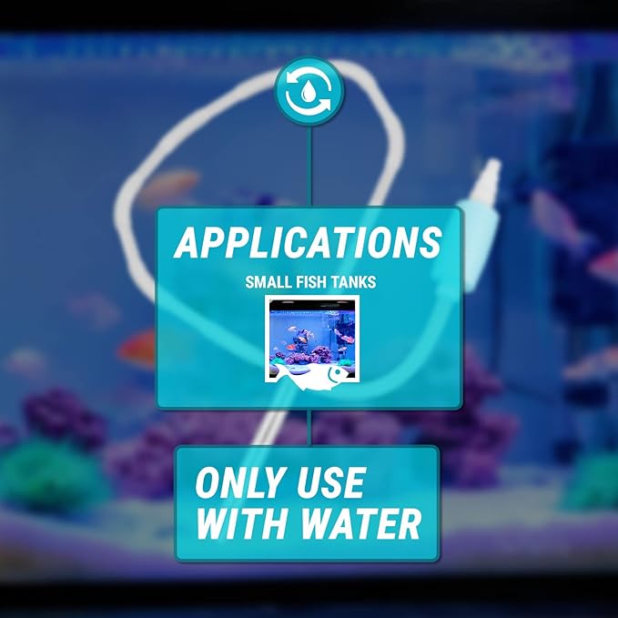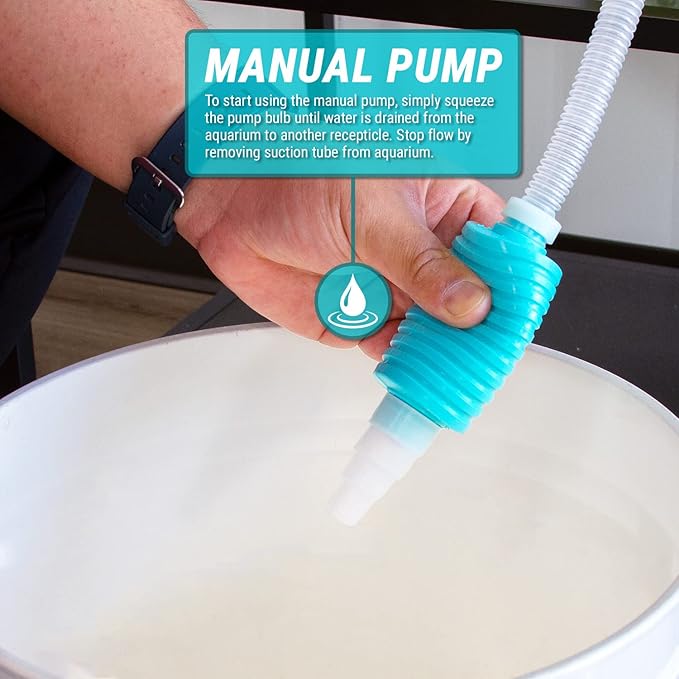 - COMPATIBLE LIQUIDS - Suitable for Water, BPA-FREE: Safe for all aquarium life - Flexible Discharge Hose of 4-inch for reaching between floor & across rooms - Simple Operation: simply use the suction cup on the side of a aquarium, and place Discharge Hose to receiving container (ex. Bucket) and begin squeezing the Bulb to begin the Siphon