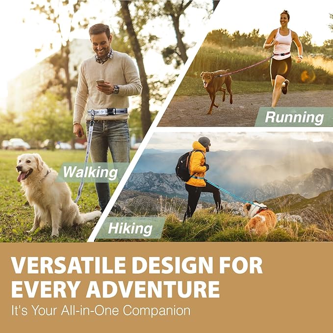 - DESIGNED FOR HANDS FREE: With this leash, running& walking with dogs frees your hands. Belt adjusts from 24 to 48 inches, and the leash can extend from 5 to 6 ft in length. Providing more range for running, jogging and hiking while ensuring a safe distance between you and your dog.