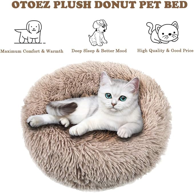 otoez Round Donut Dog Bed for Large Dogs (39.3", Taupe)