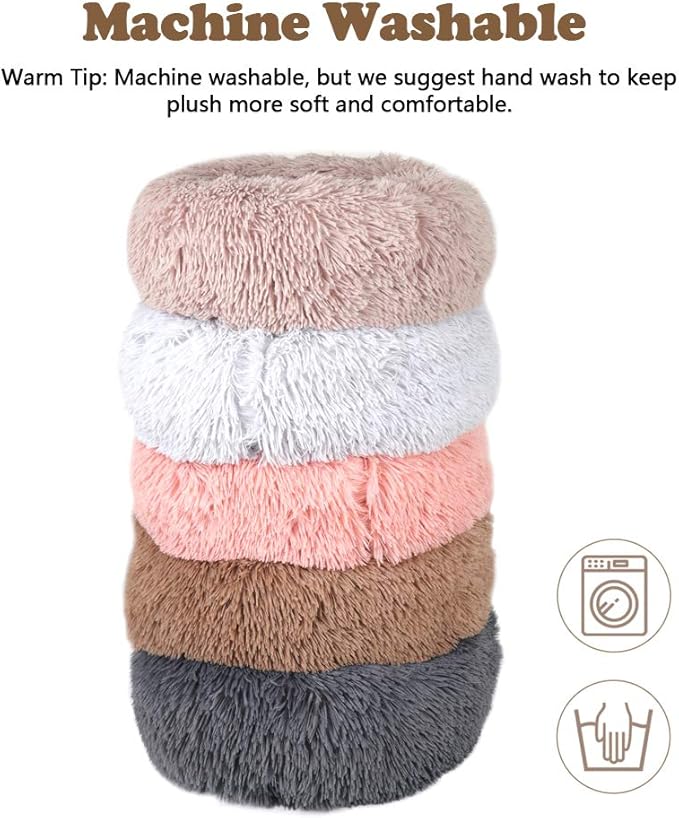 - 🐶【CARE INSTRUCTIONS】Machine washable. Avoid bleaching and using excessively hot water. The anti anxiety dog bed is vacuum packaged, so please pat or shake it to restore its fluffy shape.