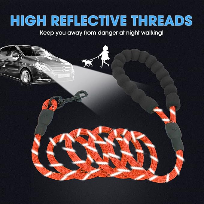- REFLECTIVE FOR NIGHT SAFETY - Highly reflective threads dog leashes keeps you both safe and visible on your late-evening walks.