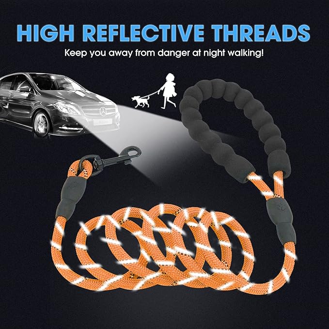 - REFLECTIVE FOR NIGHT SAFETY - Highly reflective threads dog leashes keeps you both safe and visible on your late-evening walks.