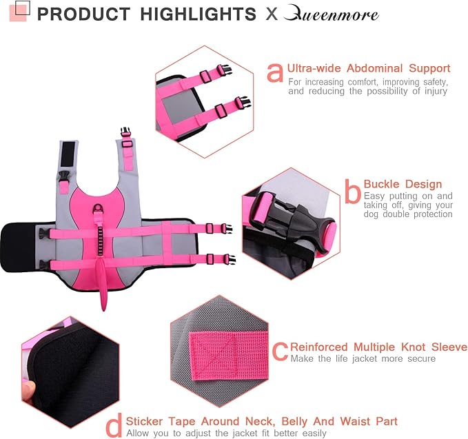 - RESCUE HANDLE, LEASH HOOK AND REFLECTION - Grab the strong and anti-slip handle at the back, lift your pet in emergency quick. Fasten a leash to the D-ring hook at back to keep your pet alawys around at you and find your pet easily with the reflective design.