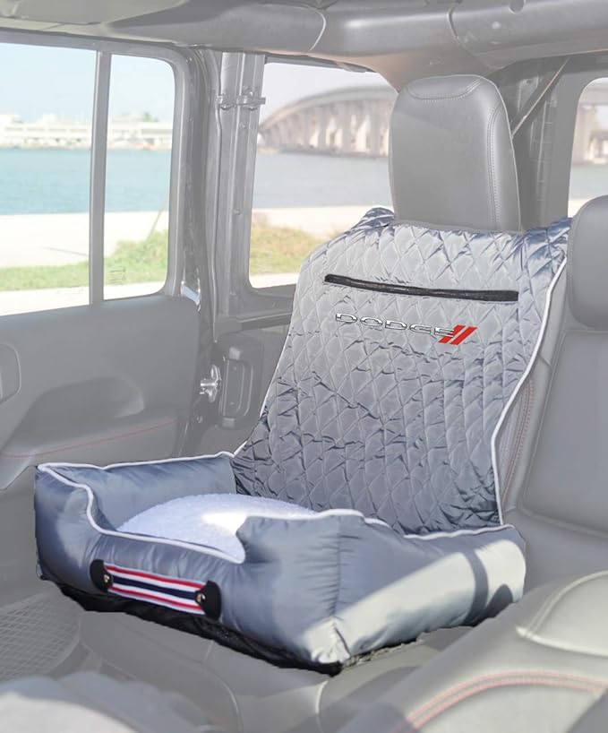 - Simply insert the hole on the top of the cover over the seat headrest and the seatbelt can be inserted on the back of the pet bed for enhanced security