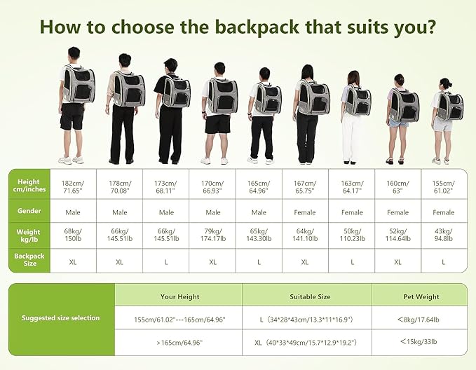 - 【 DIMENSIONS OF PET BACKPACK 】: 13.4" L x 10.6" W x 17.3" H. It comfortably accommodates small and medium-sized cats and small dogs/puppies. Please MEASURE before purchasing and ensure that your pet's size sits within the height of 16.1 inches and width of 11.8 inches. Not suitable for MOST airline carry-on. Please CHECK the airline's requirements before airplane traveling.