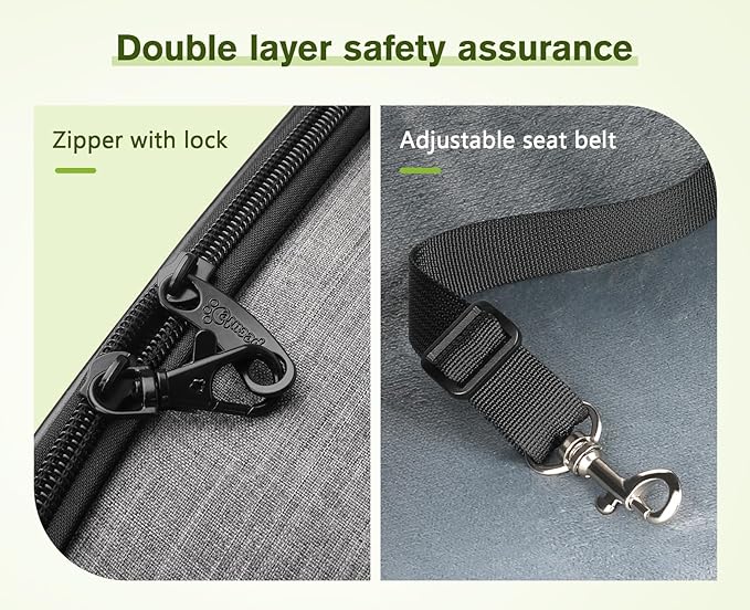 - 【SAFETY & STORAGE 】: 1, Made of high-quality Oxford Cloth, waterproof, anti-scratch, and non-irritating, let your pet breathe freely and relax. 2, Adopts lock-type zippers design to prevent the zipper from being opened by pets. Built-in retractable hook safety rope to prevent pets from escaping. 3, The pockets on both sides can store food, poop bags, and some necessary accessories.