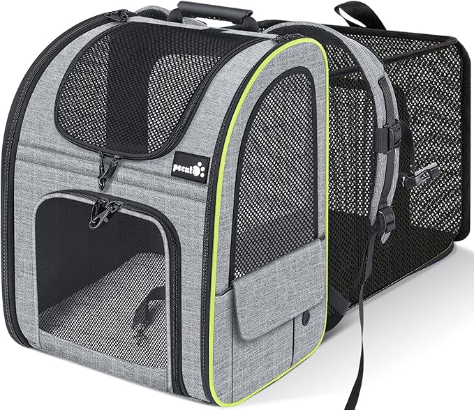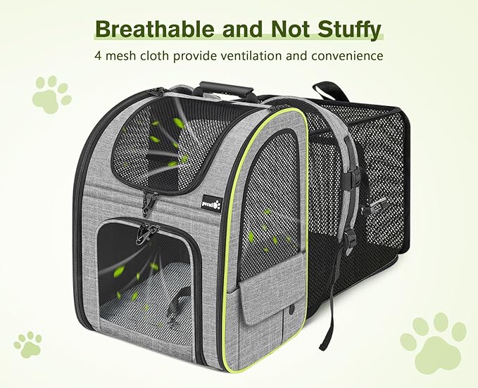 - 【 EXPANDABLE DESIGN 】: Expanded size: 13.4" L x 24.4" W x 17.3" H. This pet backpack with an expandable back design gives your pet more space to rest and increases air circulation, allowing your pet to move around more comfortably and reducing anxiety.