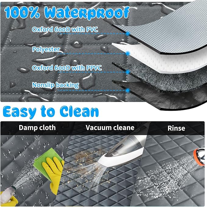 - Waterproof & Easy to Use: Made of 4-layer durable materials like 600D Oxford, the dog seat cover is waterproof, and scratch-resistant to protect your car from spills, scratches, and dirt. It is easy to install or remove the dog back seat cover, and easy to clean with a damp cloth or vacuum. It's a must-have accessory for any pet owner on the go.