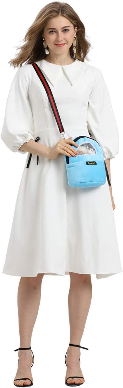 Hamster Carrier Bag, Upgraded Small Animal Bonding Soft Hedgehog Pouch Portable Outgoing Travel Bag with Adjustable Strap and Breathable Mesh for Squirrel Mice Sugar Glider Etc (Blue, L)