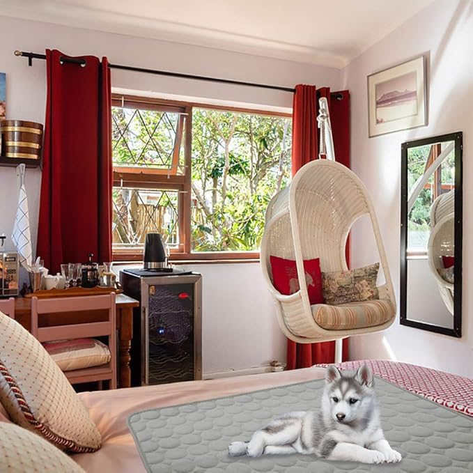 VeMee Summer Cooling Mat for Dogs Cats Ice Silk Self Dog Cooling Mat Breathable Pet Crate Pad Portable & Washable Pet Cooling Blanket for Outdoor or Home (28 X 22in