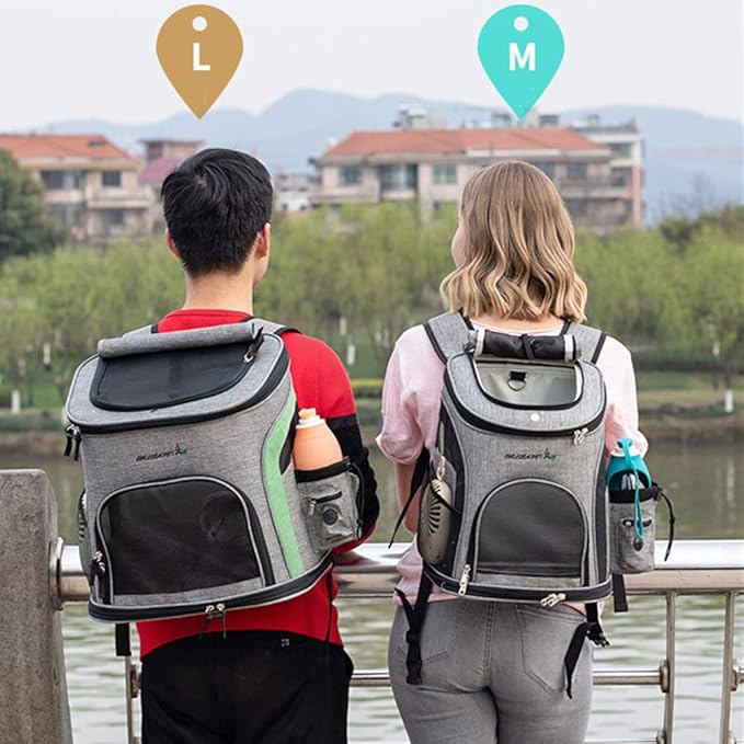 - POINT 1: Designed for the maximum convenience and comfort for you and your pet while hiking, traveling, or taking your best friend to the vet, or going for a walk in the park.Two Size L and M Measures approximately L: 37cmx28cmx40cm (L x W x H) M: 31cmx25cmx39cm(L x W x H) Easily fits cats, small dogs, and most other small/medium sized pets!