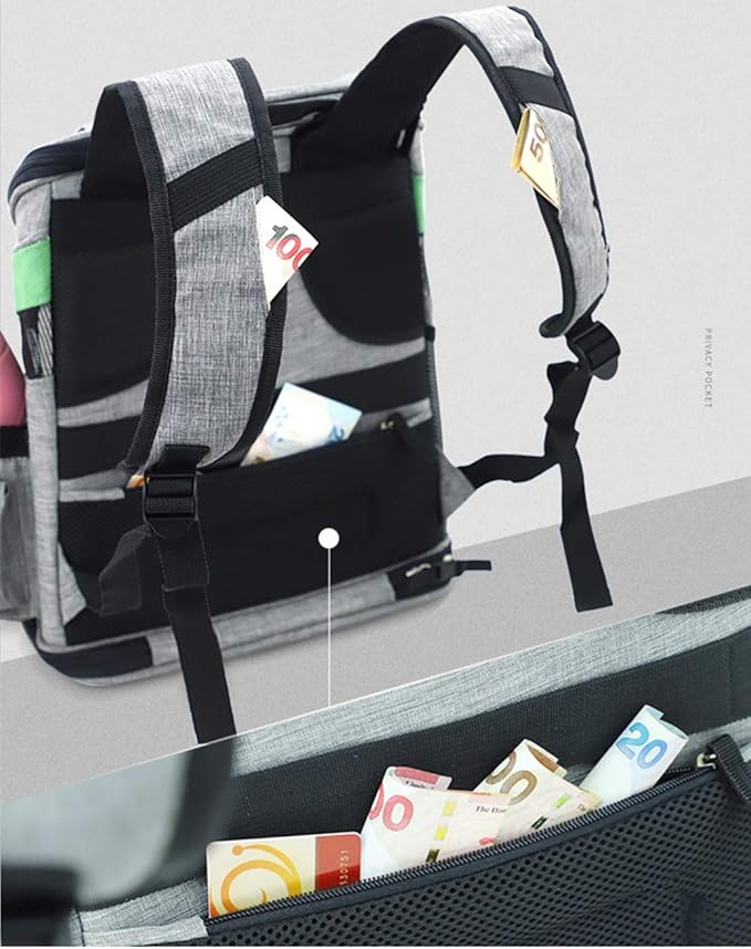 - POINT 4: Storage and Safety Made of high- Cationic linen fabric anti-scratch,Anti-Mesh. environmentally friendly, non-toxic and non-irritating, let your pet breathe freely and relax. There are two bags for storage on the side of the pet bag, one for waste bags and dispensers and water bottle holders, another for storing a mobile phone, wallets, and other small items.