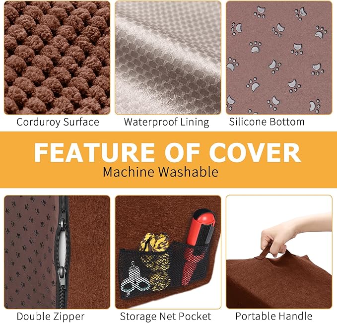 - Waterproof, Washable Cover: The surface of the cover is made of corduroy, the bottom of the dog paw pattern made of silicone, the sides and back are made of suede, all-round to achieve the effect of non-slip. Cover added waterproof layer to protect the sponge from getting dirty. Even if the pet accidentally pee on the dog ladder, will not leave a mark on the sponge. Only need to clean the cover can be. Cover can be machine washed.