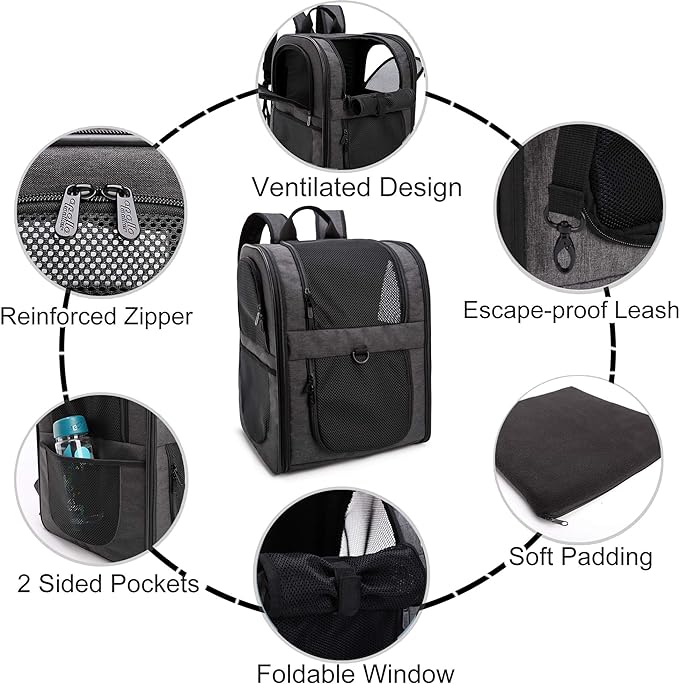 - ESCAPE PROOF- The last thing you want is an escaped pet running around the airplane cabin or outdoors. APOLLO WALKER pet backback carrier keeps your pet safe and secure while flying, walking, cycling, or hiking with claw-proof mesh and reinforced zippers. Carrier also has a leash tether to attach to your dog or cat’s collar if you decide to open the top window to let your pet stick their head out.