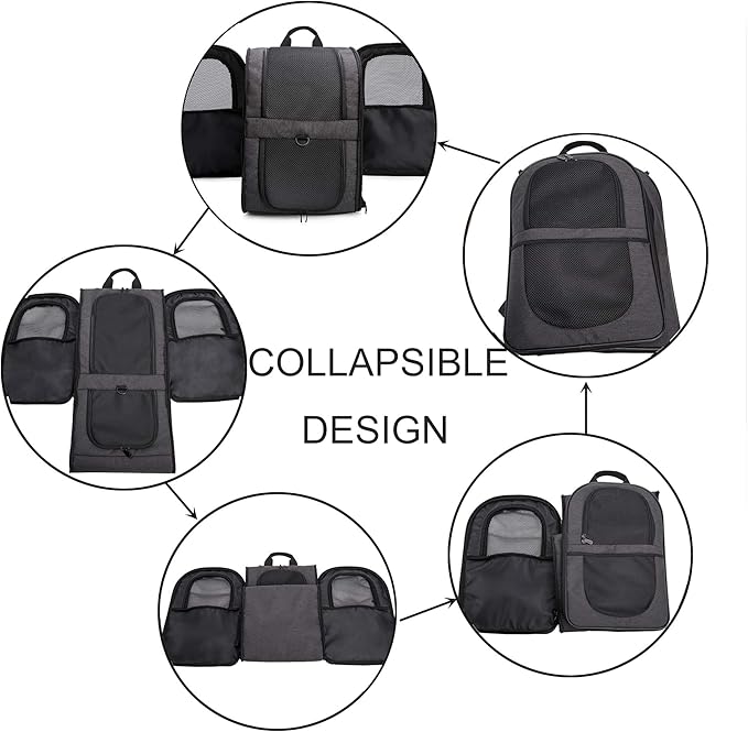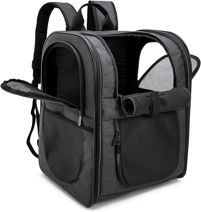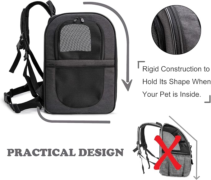 - BETTER CONSTUCTION-Well ventilated design for optimal airflow, two-way entry for easy access, top mesh window for more headroom and visibility, and thick, soft fleece bedding for your pet resting and relaxing. This backpack is firmly structured, providing ample room for your pet to move around.