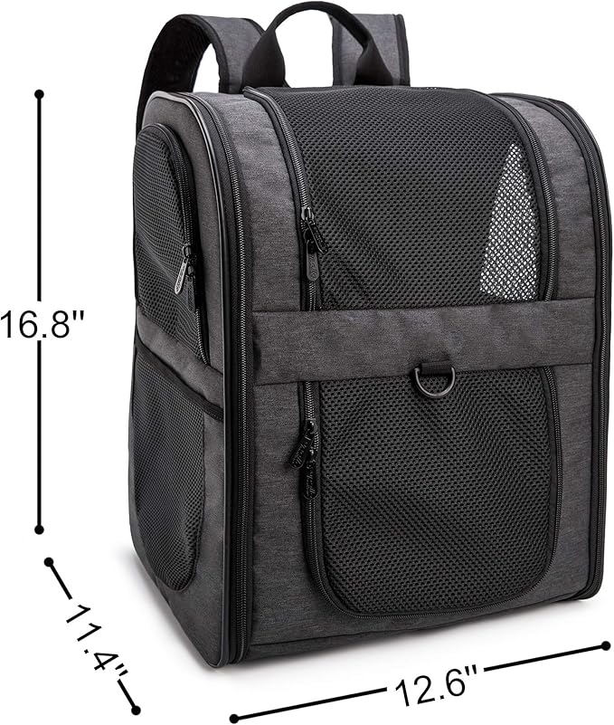 - LARGE SIZE-Designed for the maximum convenience and comfort for you and your pet while hiking, traveling, or taking your best friend to the vet, or going for a walk in the park. Measures approximately 11.4" x 12.6" x 16.8" (L x W x H),larger than most competitors in the market.Easily fits medium cats&dogs,even large sized cats and other medium pets.
