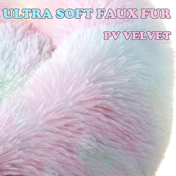 otoez Kitten Puppy Bed Extra Small XS Round Dog Cat Beds Anti Anxiety Plush Pet Calming Donut Bed with Non-Slip Waterproof Bottom (15.7", Rainbow)