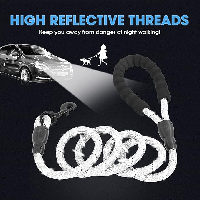 - REFLECTIVE FOR NIGHT SAFETY - Highly reflective threads dog leashes keeps you both safe and visible on your late-evening walks.