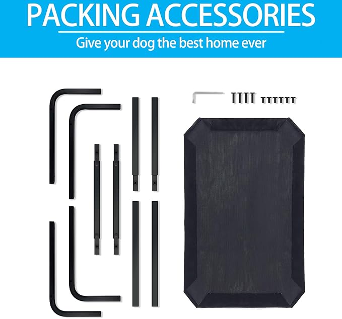 - PORTABLE DOG COT - Easy to assemble, Comes with mounting accessories Lightweight and portable. Strong stability and high load-bearing capacity mean goodbye to worrying about the danger of sudden collapse of the bed.